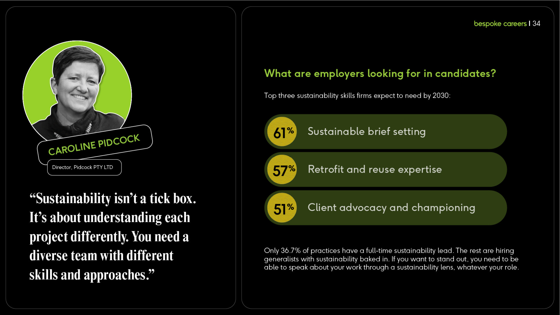95% of survey respondents say that sustainable design is a factor when they’re looking at job opportunities, and 73% say it’s ‘very important or a deal breaker’. Does this reflect what you’re seeing?