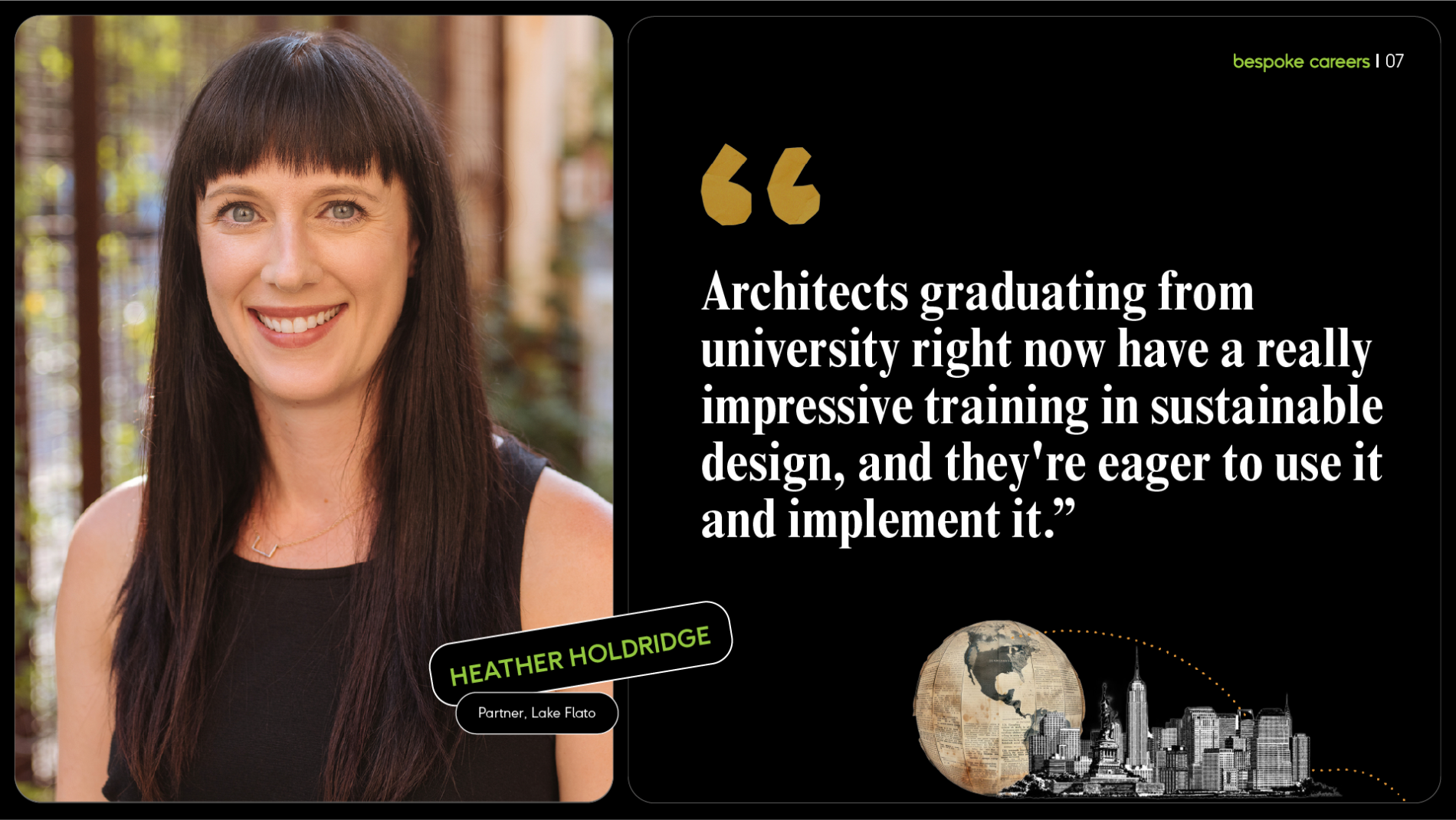 It is disappointing that there are not enough firms that are focused on it for people to be able to use those skills. I get a lot of calls from young architects and engineers around the country asking how they turn sustainable design into a bigger part of their role and job description.